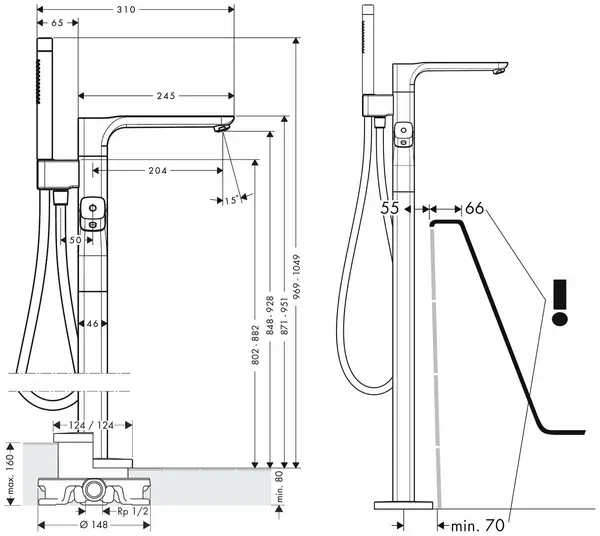 Смеситель термостатический напольный для ванны Axor Urquiola 11422000 — это идеальное решение для тех, кто ценит комфорт и стиль в своей ванной комнате.