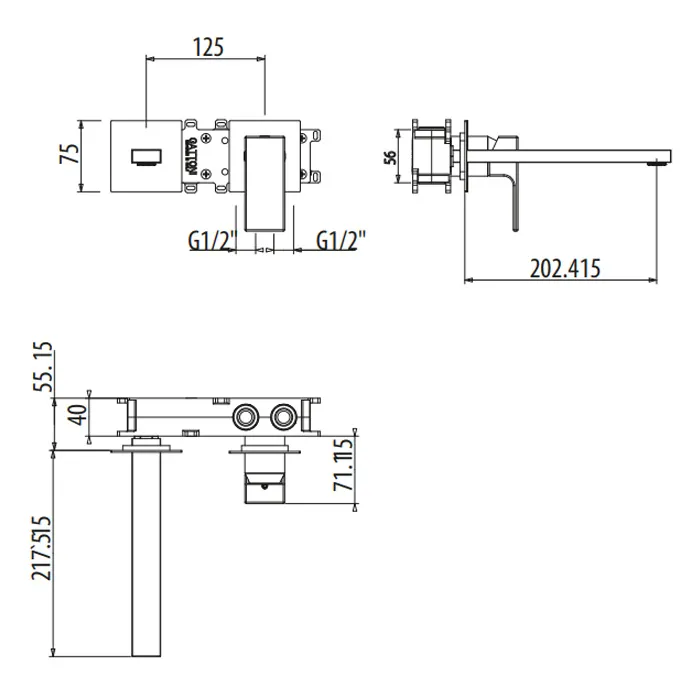 Смеситель встраиваемый Gattoni Kubik на 2 отв, с внутренней частью G-BOX, излив 202, nero opaco 2539/25NO