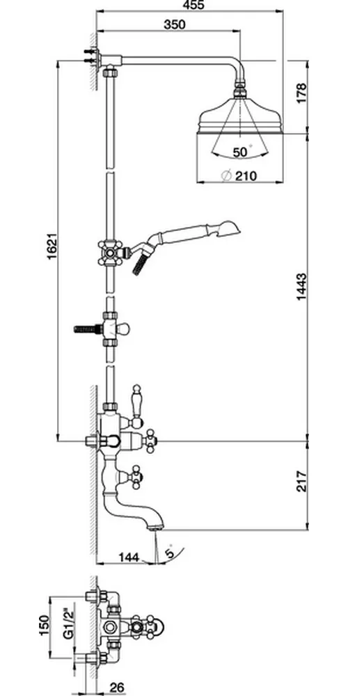 Термостатический смеситель для ванны Cisal Arcana с душевым комплектом и верхним душем, золото AC00413024