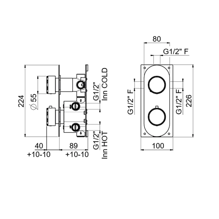 Внешняя часть для термостатического смесителя Carimali Still Oh на 2 потребителя, вход G 1/2, хром 0-STL4101EST-CR