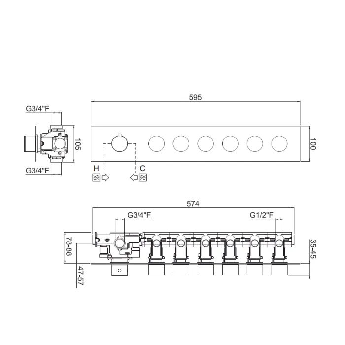 Внешняя часть горизонтальная для термостатического смесителя Carimali Ilquadro с 6-ю независимыми выходами хром 21069EST/O-CR