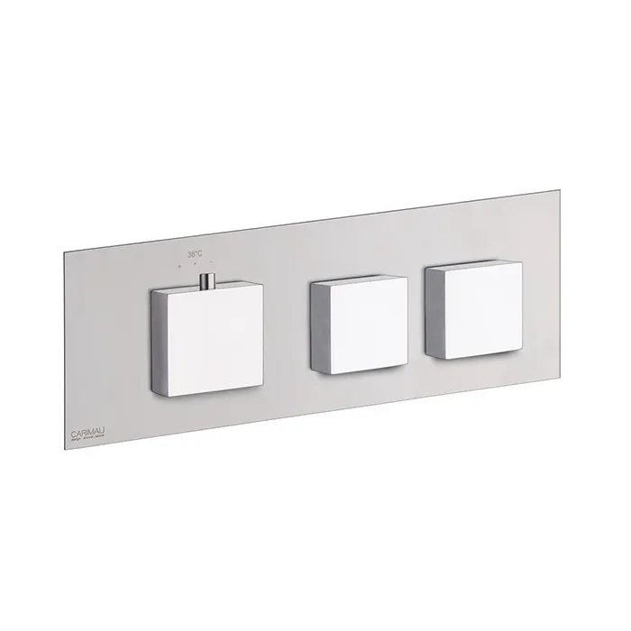 Внешняя часть горизонтальная термостатического смесителя Carimali Ilquadro на 2 потребителя. Квадратная пластина и ручки, хром 21020EST/O-CR