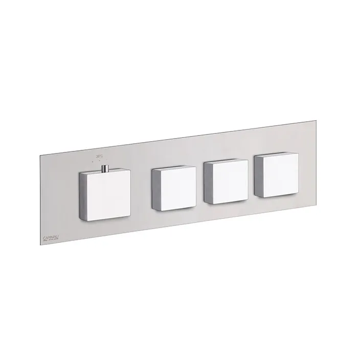 Внешняя часть горизонтальная термостатического смесителя Carimali Ilquadro на 3 потребителя. Квадратная пластина и ручки, хром 21030EST/O-CR