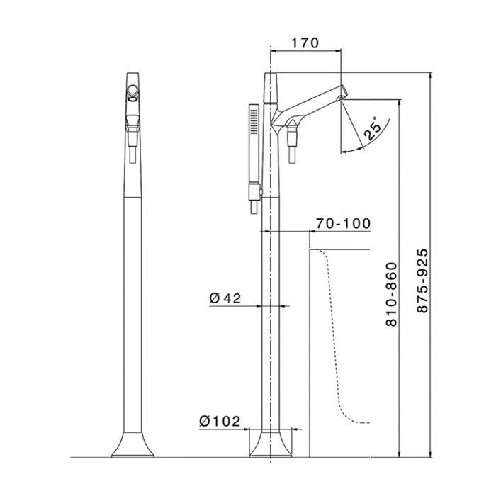 Внешняя часть отдельностоящего смесителя на ванну с руч душем Cisal Vita хром VI01420021
