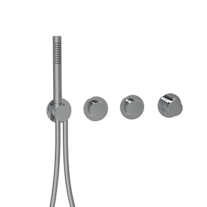 Внешняя часть термостатического смесителя Almar Modular Push на 2 потребителя с модулем ручного душа, оружейный металл брашированный pvd E180433.GM