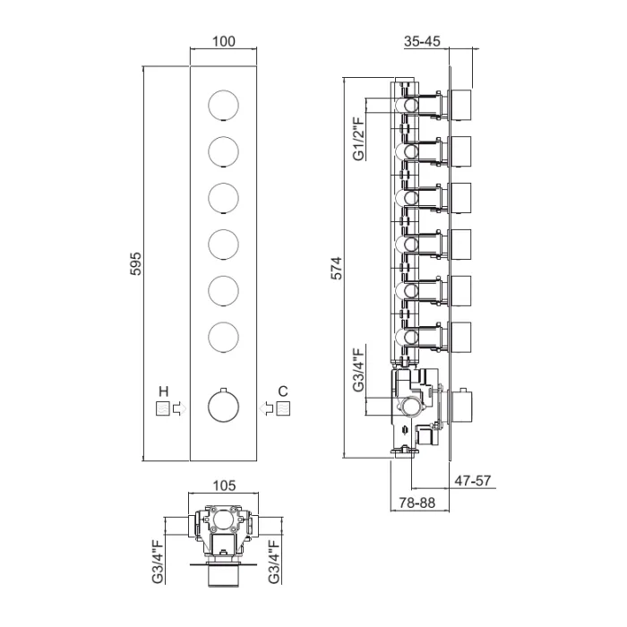 Внешняя часть вертикальная для термостатического смесителя Carimali Ilquadro с 6-ю независимыми выходами хром 21069EST-CR