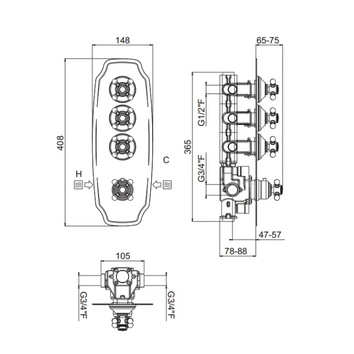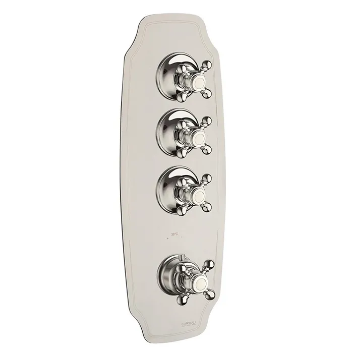 Внешняя часть вертикальная термостатического смесителя Carimali Colonial на 3 потребителя. Colonial пластина and ручки, хром 21034EST-CR