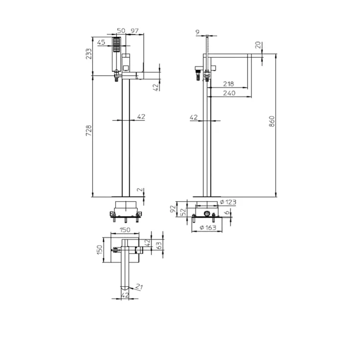 Смеситель Bossini GILLO для ванной комнаты с колонной. настил пола GILLO. лейка Flat-one. шланг из латуни 125 см... цвет хром