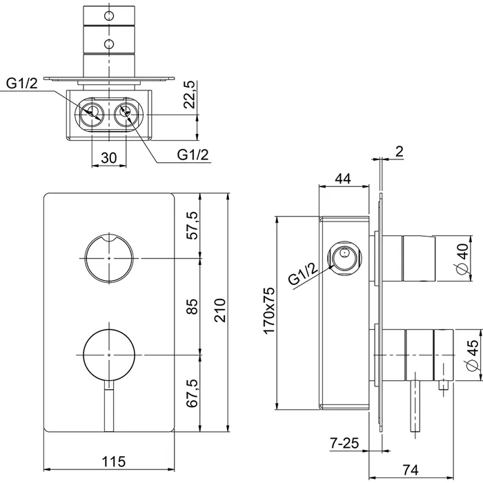 Встраиваемый термостатический смеситель с переключателем Cisal Xion на 2 положения,внешняя и внутренняя части в комплекте, нержавеющая сталь XI008104D1