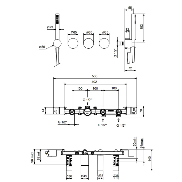 Встроенный смеситель для ванны Fantini Af/21 на 2 потока, ручная лейка FIT, гибкий шланг 150 см, наружная часть, Matt British Gold PVD 27 P6 A817B
