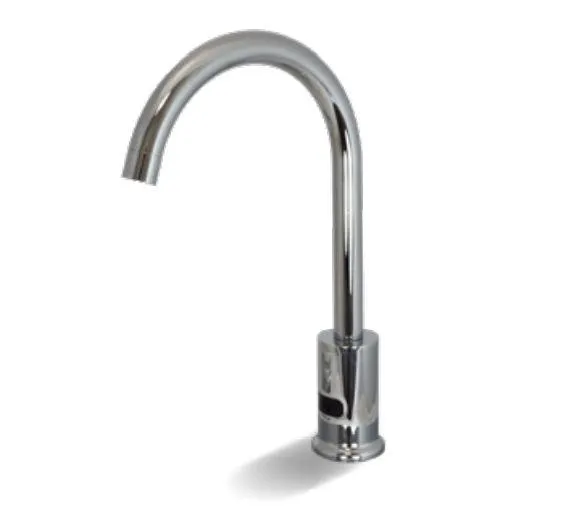 Автоматический водопроводный кран для умывальника глянцевый в высоким поворотным носиком. Установка на столешницу с автоматической системой активации через встроенный в нее инфракрасный датчик. Встроенная система против образования легионеллы. Работа от сети 220 В 50/60 Гц или от 4 батареек АА, обеспечивающих 6 В в случае сбоя питания. Расход 6 л / мин при давлении 3 бара Материал: хромированная латунь CW617N Размеры: 350 высота x 60 ширина x 185 глубина (мм)