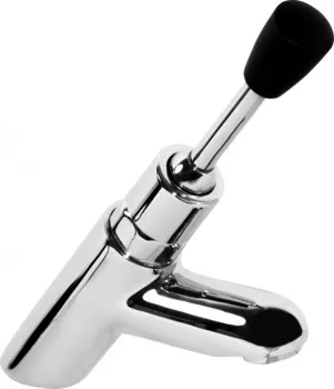 Смеситель с таймером подачи воды для раковины, с рычагом, мягким нажатием Установка на столешницу С ограничителем расхода 6 л / мин. «Стандарт» Задержка времени: 7 ± 3 секунды при 3 бар (не подлежит изменению) Материал: детали из хромированной латуни CW617N и пластмассы POM. Размеры: 195 высота x 137 глубина (мм).