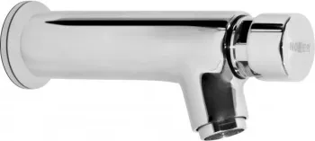 Однорычажный настенный кран с таймером для умывальника со стандартным расходом воды. Настенный монтаж c ограничителем расхода 6 л / мин. «Стандарт» Задержка времени: 7 ± 3 секунды при 3 бар (не подлежит изменению) Материал: детали из хромированной латуни CW617N и пластмассы POM. Размеры: 76 высота x 55 ширина x 154 глубина (мм)