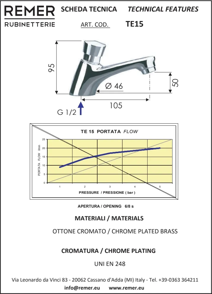 Кран порционный Remer Tempor TE15 предназначен для установки на раковину и идеально подходит для общественных мест благодаря своей функции автоматического закрытия через 6-8 секунд. Изготовленный из хромированной латуни, данный кран не только обеспечивает надежность и долговечность, но и дополняет интерьер классическим глянцевым дизайном. Краны с регулировкой времени, такие как модели серии TEMPOR, способствуют значительной экономии воды и помогают рационально использовать ее ресурсы. Они универсальны в своем дизайне, подходя как для современных, так и для традиционных интерьеров.