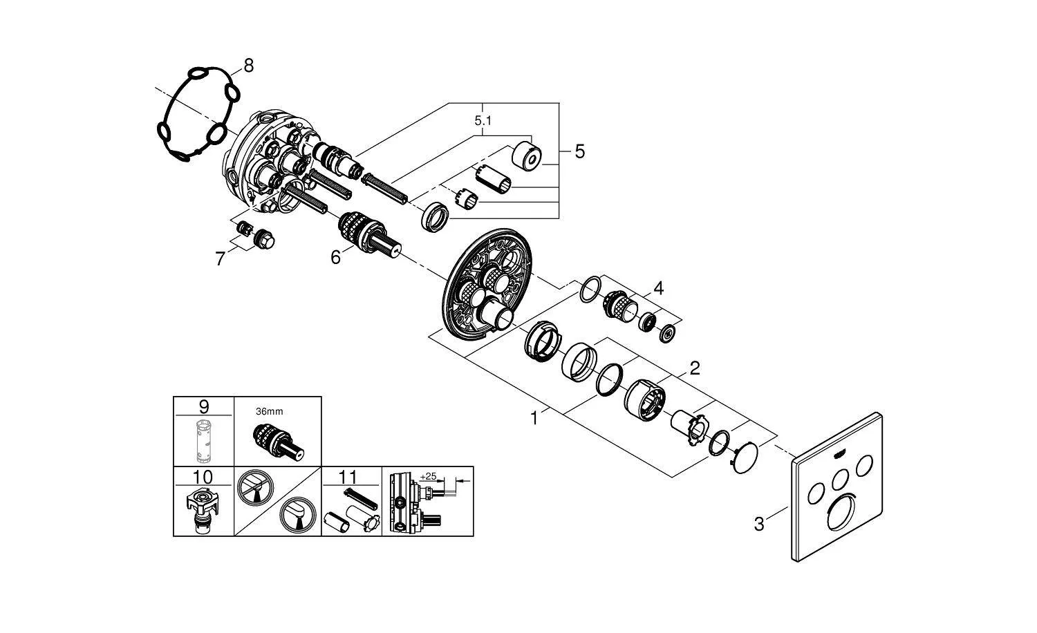 Комплект верхней монтажной части для GROHE Rapido SmartBox 35600000/35604000 (универсальная встраиваемая часть).