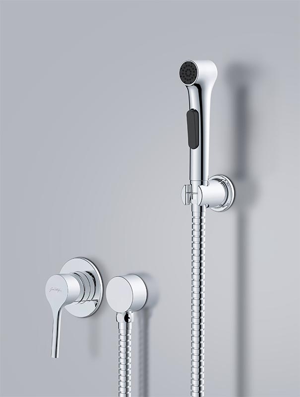 • Смеситель, душевая лейка с держателем , коленное соединение, шланг