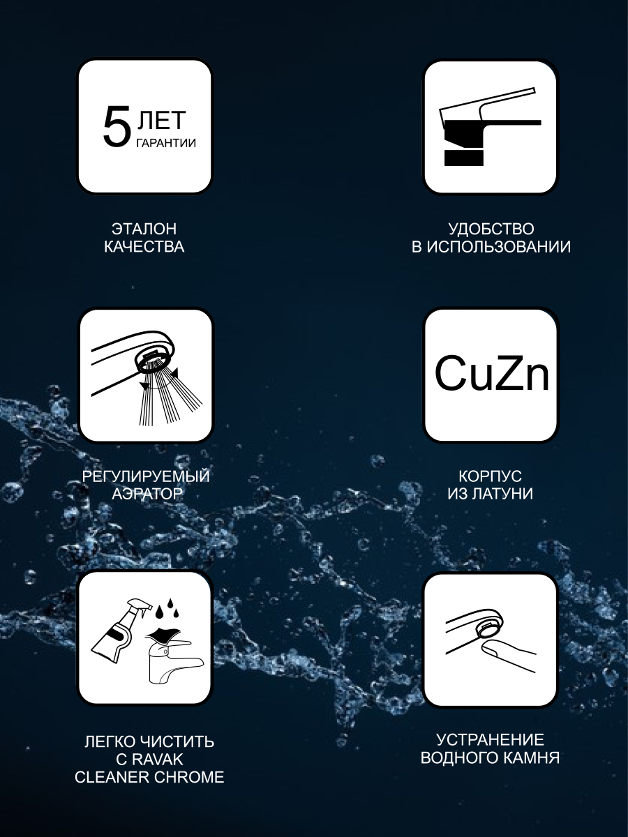 Смесители Neo можно комбинировать с остальными изделия RAVAK. Для очистки внешней поверхности используйте RAVAK Cleaner Chrome.