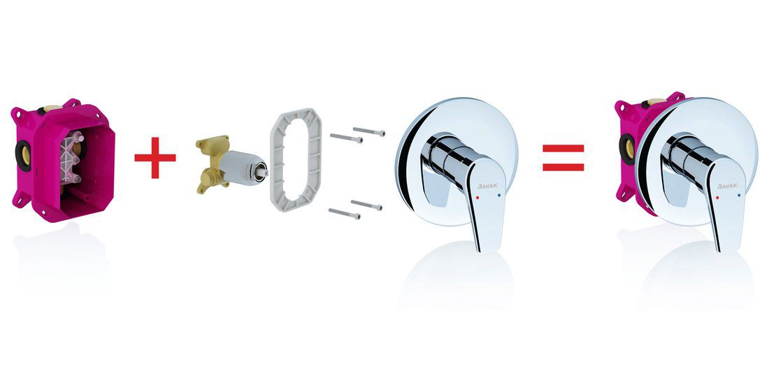 R-box содержит материал для крепления к стене, не содержит подключение к воде.