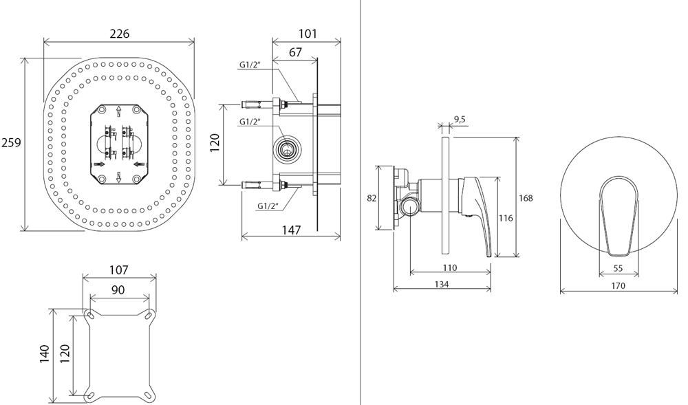 Смеситель скрытого монтажа, изготовленный из латуни (верхняя часть смесителя NO 065.00, NO 066.00) не является составной частью R-box, ее нужно покупать отдельно.
