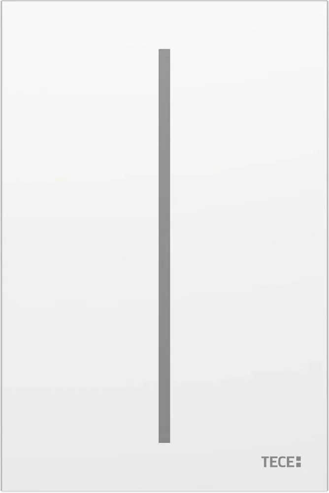 Электронная панель смыва для писсуара (белое стекло)). Панель смыва писсуара TECEfilo из стекла, питание от сети 230 В. Комплект для монтажа бесконтактного инфракрасного смывного устройства, совместим с корпусом U2 клапана смыва писсуара TECE (клапан 9370040 или инсталляция 9320013); минимальное рабочее давление в системе — 0,5 бар; возможность настройки времени смыва, паузы для экономии воды, установки крышки писсуара, режима чистки, предварительного и гигиенического смывов. Комплект поставки: • Магнитный клапан с грязевым фильтром • Сверхплоская прикручиваемая металлическая панель с датчиком обнаружения • Крепежные элементы • Ключ для программирования. Размеры (ш x в x г): 100 x 150 x 7 мм. Подходит для монтажа на уровне стены вместе с монтажной рамкой TECEfilo.