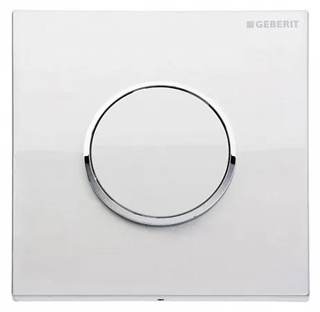 Ручной пневмопривод смыва для писсуара с клавишей Sigma 10 (белая пластиковая панель, клавиша с хромированным ободком), рабочее давление 1 - 8 бар, максимальная температура воды 30°C, продолжительность смыва 4/8/12 сек, расход воды 0.3 л/сек (0.24 л/сек с ограничителем) при давлении 1 бар, незначительное усилие для нажима, срабатывание смыва при отпускании клавиши, монтаж с системой инсталляции для писсуара или монтажным комплектом для писсуара Sigma 10 HyTouch.