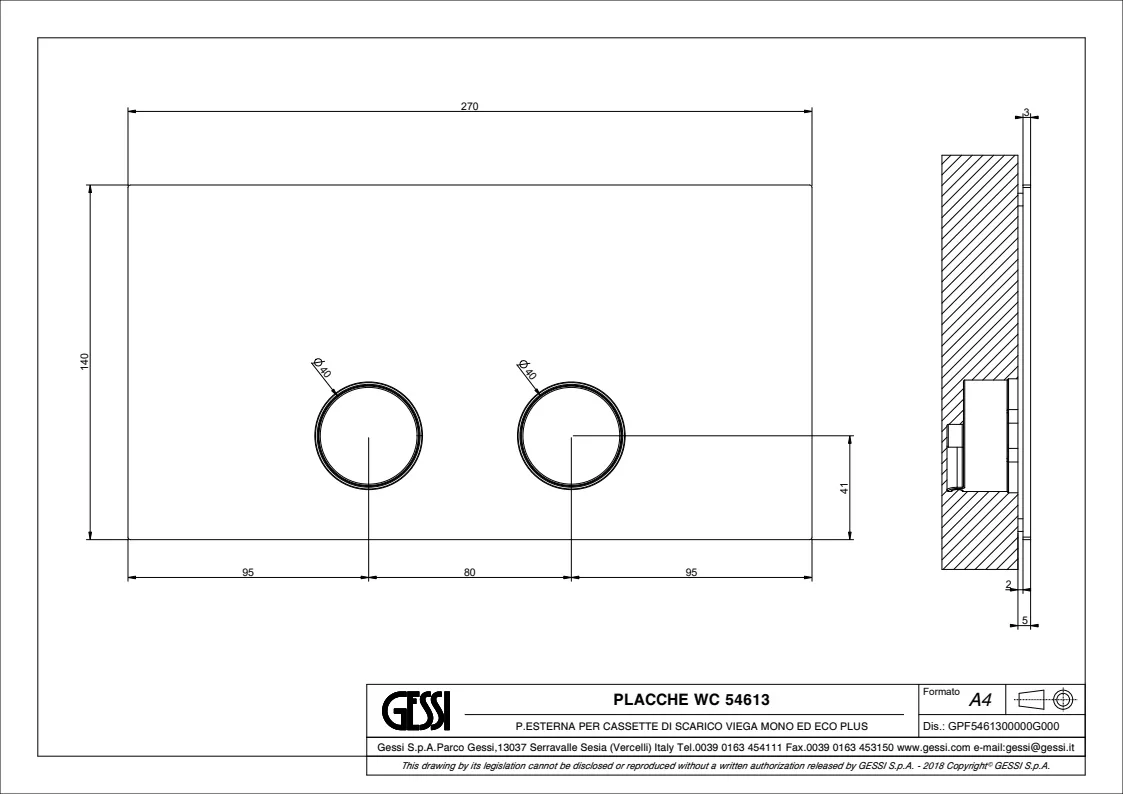 Клавиша смыва Gessi 54613.708 Copper Brushed PVD