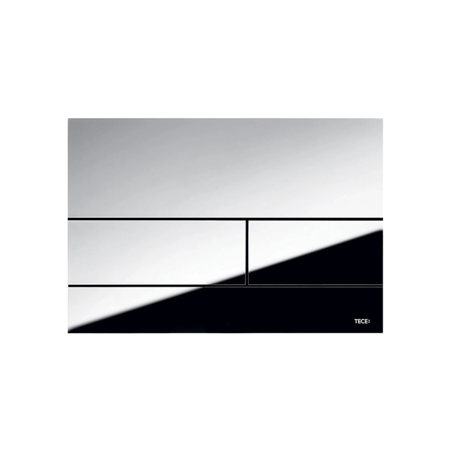 Панель смыва для смывных бачков TECE, фронтальная или верхняя установка. Сверхплоская металлическая панель смыва с двумя установленными на пружинах клавишами кулисного типа. В состав комплекта входят толкатели, крепежные элементы и инструмент для монтажа/демонтажа. Совместима с контейнерами для гигиенических таблеток.