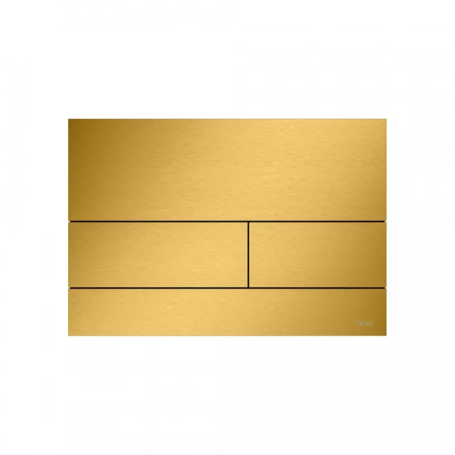 Накладная панель для унитаза, механический привод, 2 режима, для подвесного или приставного унитаза, материал - металл, цвет панели и клавиша - золото шлифованное, PVD, для горизонтальной или вертикальной установки. Новая версия популярной панели смыва TECESquare. Размеры панели смыва уменьшились до 220 x 150 мм. Теперь монтажная рамка, которая ранее заказывалась дополнительно, теперь интегрирована в панель смыва. Это упрощает процесс монтажа и значительно экономит время. Тонкое специальное покрытие защищает поверхность от отпечатков пальцев, а резиновые прокладки увеличивают ощущение мягкости при нажатии, предотвращая возникновение каких-либо шумов при эксплуатации. Размеры (Ш x В x Г): 220 x 150 x 3 мм. Комплектация: комплект толкателей и крепежных элементов, инструмент для монтажа/демонтажа панели смыва, инструкция по установке панели смыва. Гарантия - 10 лет, производство - Германия. Подходит для всех типов инсталляций TECE.