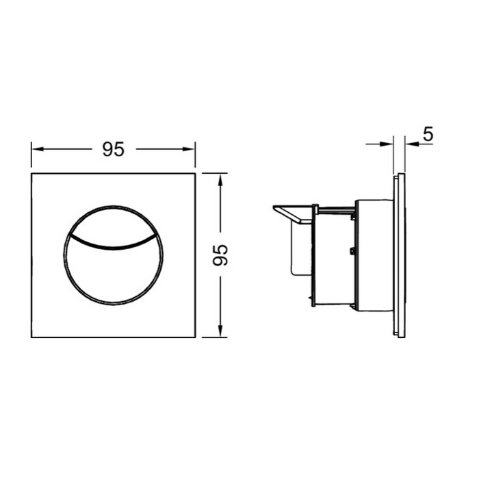 Пневматический дистанционный привод смыва для бачков TECE для совместной установки с механическими панелями смыва TECE. Для установки в стену или мебель. Совместим с контейнером для гигиенических таблеток. Размеры (ш x в x г): 95 x 95 x 5 мм.