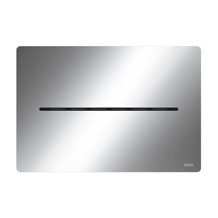 Электронная панель смыва с гигиеничной бесконтактной активацией смыва для стандартных бачков TECE (глубиной 13 см) с фронтальной активацией и высокой установки около 1 м (центр панели смыва).