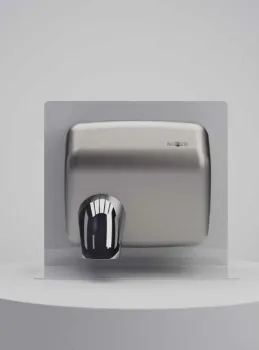 Сушилка для рук Nofer Сyclon в стильном матовом корпусе из нержавеющей стали AISI 304 оснащена мощным двигателем и нагревательным элементом (суммарная мощность = 2450 W), соплом для выхода воздуха и автоматическим сенсорным датчиком. А если учесть её стильный современный корпус, заводскую гарантию, то это делает её идеальным решением для ресторанов, кафе, торговых центров и прочих публичных мест.