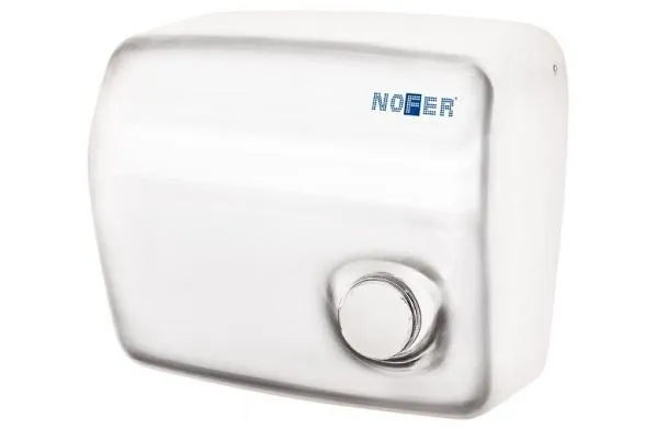 Сушилка для рук KAI имеет антивандальный корпус толщиной 1 мм из нержавеющей стали. Аппарат активируется нажатием кнопки. Сушилка прекрасно подойдёт для мест со средней проходимостью, таких как офис, кафе или небольшой торговый центр. Данный аппарат оборудован двигателем мощностью 110 W и нагревательным элементом на 1350 W, что позволяет высушить руки ваших посетителей за 40 секунд. Сушилка разработана на испанской фабрике Nofer, в городе Барселона, которая считается одной из самых технологичных фабрик в Европе.