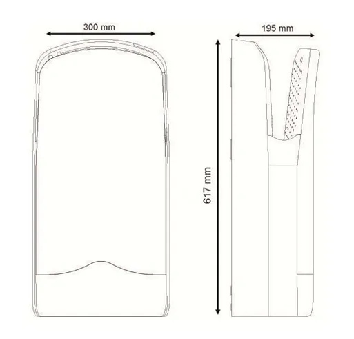 Вертикальная сушилка для рук Nofer V-jet Triblade считается самой мощной сушилкой в мире! Она справляется со своей работой за 6 секунд! Внешне эта модель мало отличается от Nofer V-jet 01303. Имеется только одно отличие: погружная камера агрегата не имеет 300 отверстий в отличие от аналогичного устройства. Погружная часть этого аппарата имеет 6 больших вырезов выхода воздуха, создает линию мощного потока, направленную на руки пользователя с двух сторон. Скорость воздуха достигает 340 км/ч.