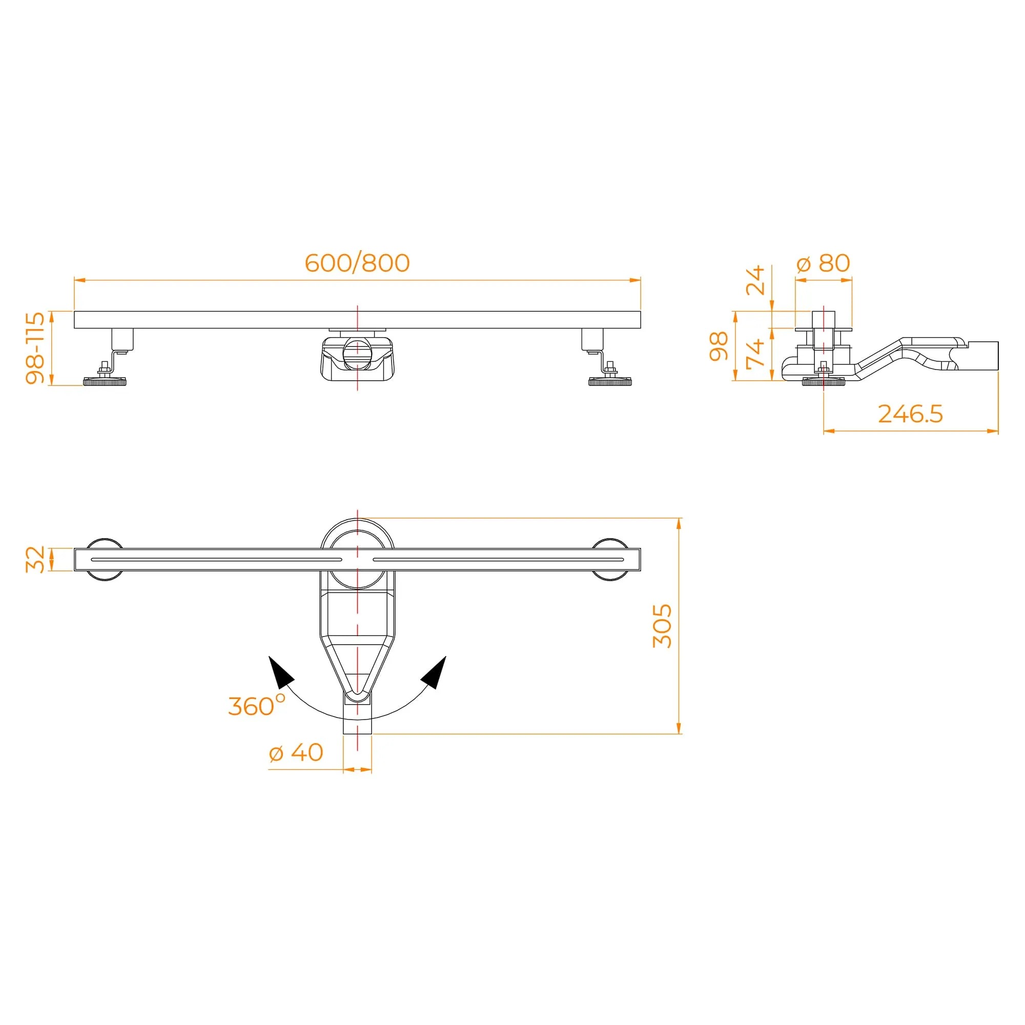 Душевой трап RGW SDR SDR-52Gb двухлинейная щелевая 600 мм золото 76215260-05