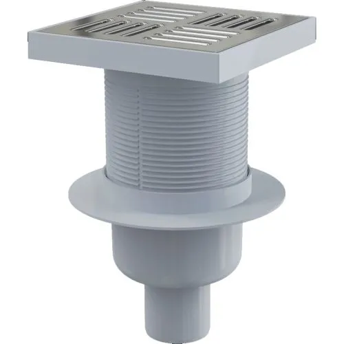 AlcaPlast APV6411 Душевой трап | комплект с дизайн-решёткой 150*150 мм (нержавеющая сталь). Для ванных комнат и других помещений, где предполагается частый и регулярный сток воды в сливной трап. Для водоотведения на уровне пола. Для безбарьерного доступа. Решетка из нержавеющей стали 143×143×5 мм. Регулируемая по высоте горловина 22–110 мм. Изоляционный воротник для удобного монтажа гидроизоляции пола. Прямое подключение к канализационному стоку Ø50 мм. Вручную легко чистящийся сифон, вплоть до сточной трубы. Мокрый гидрозатвор. Совместимость с другими составными частями сливного трапа, включительно мокрого, сухого и комбинированного гидрозатвора SMART. Материал: полипропилен, устойчивый к механическим, химическим и термическим повреждениям. Материал: нержавеющая сталь AISI 304, DIN 1.4301. В комплекте: Корпус сливного трапа с прямым подключением к стоку Ø50 мм; Горловина сливного трапа 150×150 мм; Решетка из нержавеющей стали; Мокрый гидрозатвор; Комплект прокладок.