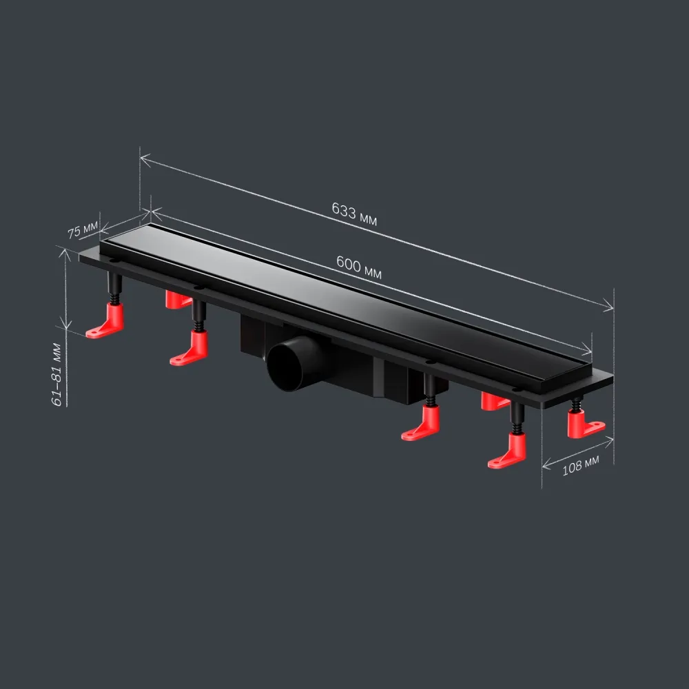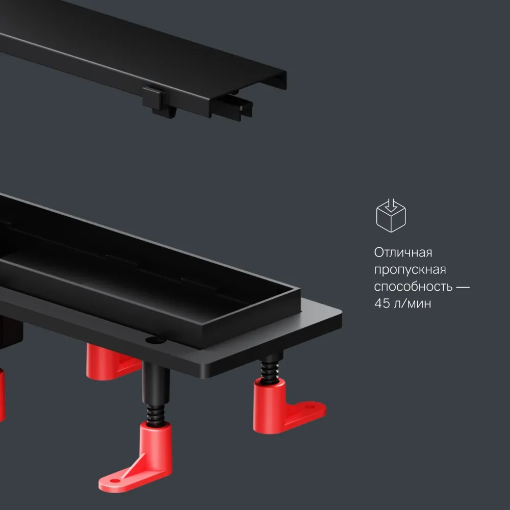 - Дополнительное оснащение: скребок для чистки трапа, решетка-фильтр, регулируемые опоры
