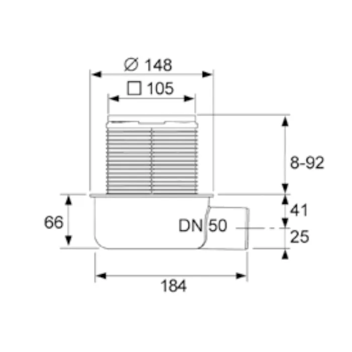 • Сифон пластиковый (PP) с горизонтальным прямым отводом DN 50
