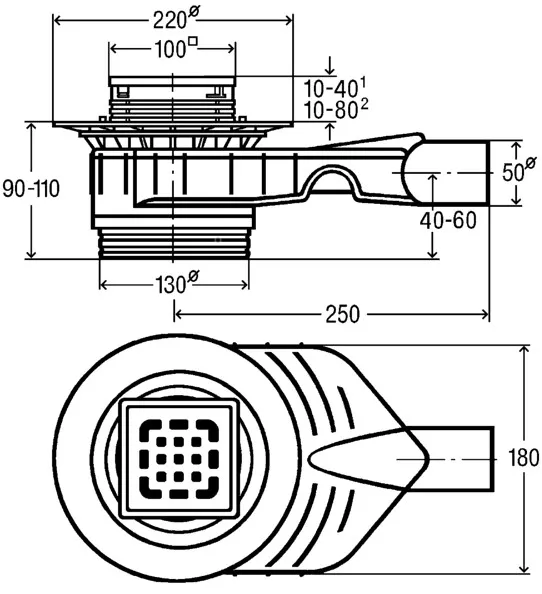 669195 Advantix Top трап для ванной комнаты, монтажная высота 90-110мм, пропускная способность 0,8-1 л/с, d=50, модель 4914.10