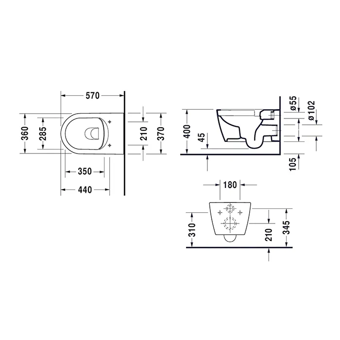 Унитаз подвесной Duravit Me By Starck 45290900A11 (25290900001+002009) покрытием WonderGliss