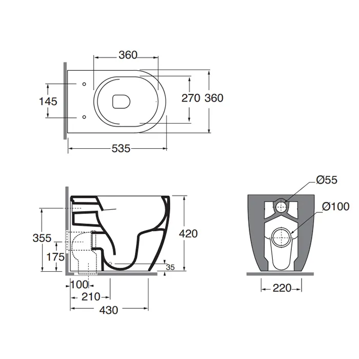 Унитаз приставной Azzurra Comoda CMVCTPE00000CA/(COM 100 CA/P) carbone c креплением VFV, Easy Clean, carbone