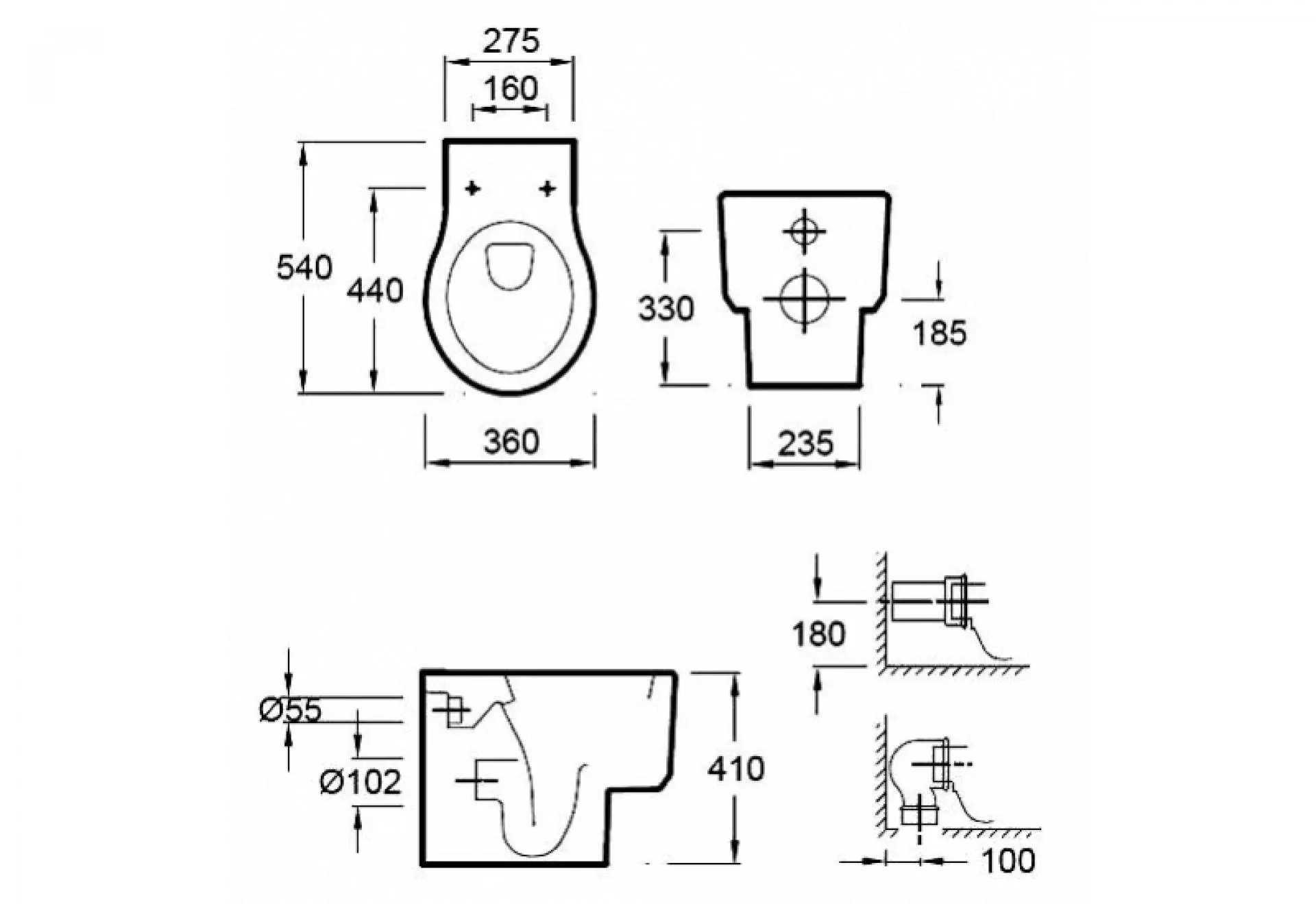 Унитаз «vario» без бачка 54 х 36 см, устанавливаемый влотную к стене.