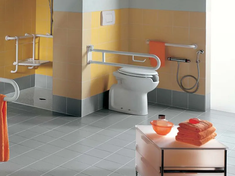 Низкое положение: Унитаз имеет более низкую высоту по сравнению с обычными моделями, что облегчает инвалидам перемещение на и с унитаза.