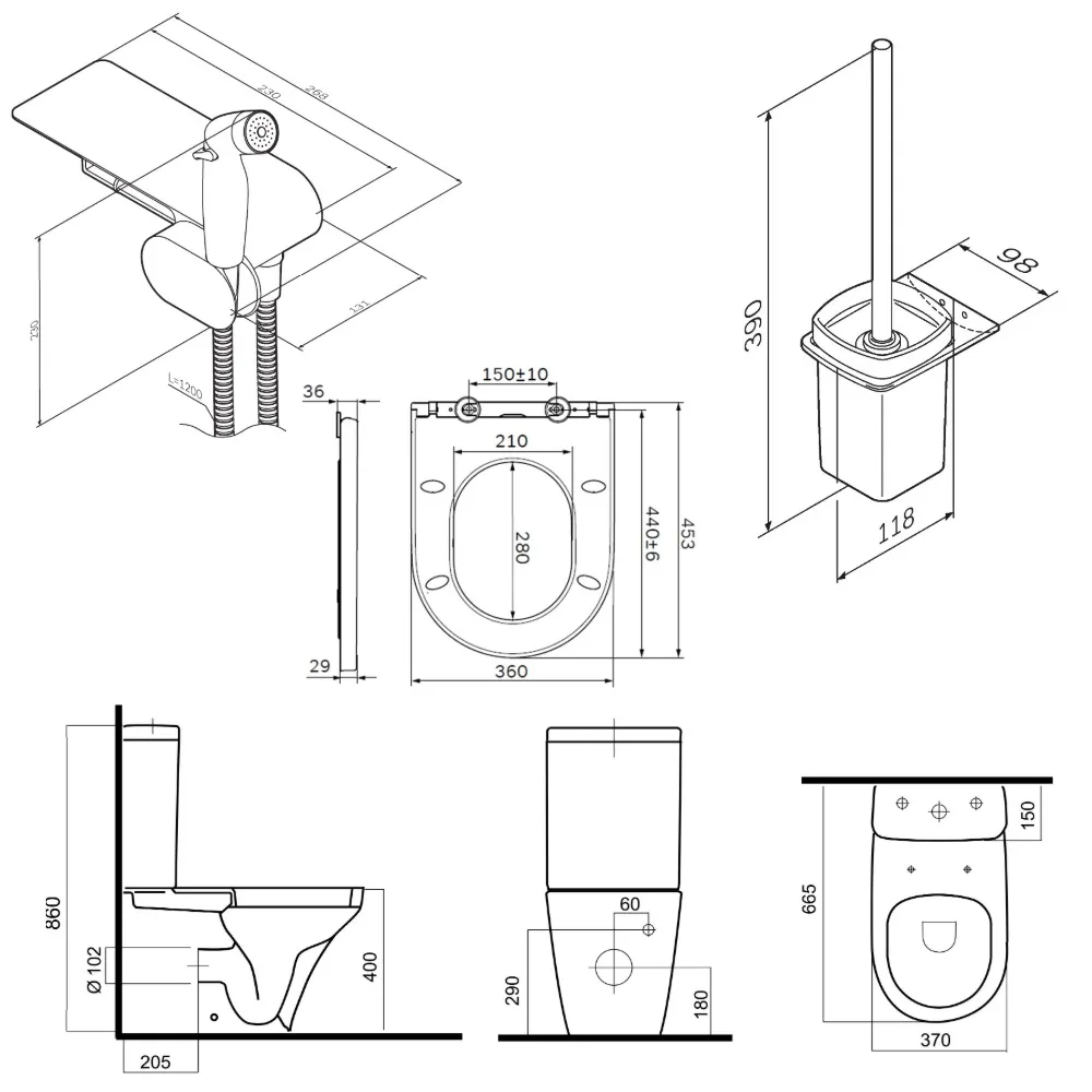 - Особенности: встроенный держатель для туалетной бумаги с полкой и держателем гиг душа