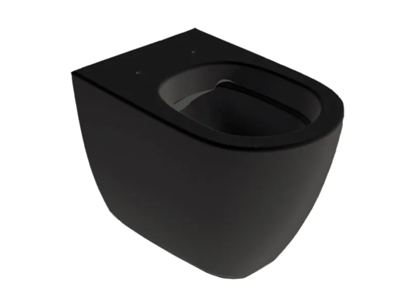 Унитаз приставной безободковый HATRIA FUSION A0Y1ZA02 с универсальным сливом, размер 35.5х54 см, цвет черный матовый. Крепления в комплекте. Крышка-сидение приобретается отдельно. Может комплектоваться как бачком арт. Y0MK01, так и бачком скрытого монтажа.