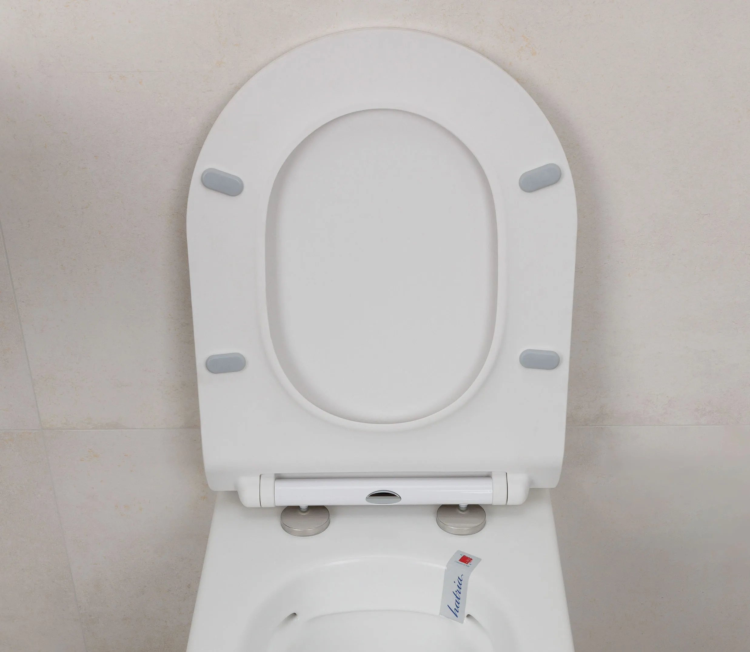 Унитаз приставной безободковый HATRIA FUSION Y1ZA01 с универсальным сливом, размер 35.5х54.5 см, цвет белый. Крепления в комплекте. Крышка-сидение приобретается отдельно. Может комплектоваться как бачком арт. Y0MK01, так и бачком скрытого монтажа.