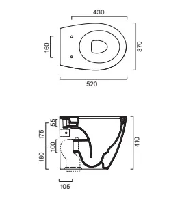 - Silentech: усовершенствованная система слива без обода, обеспечивающая максимальную гигиену и снижение уровня шума до 64 дБ.