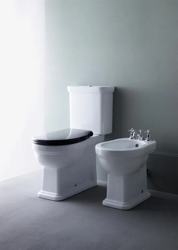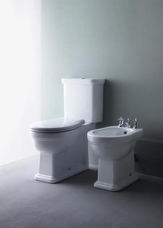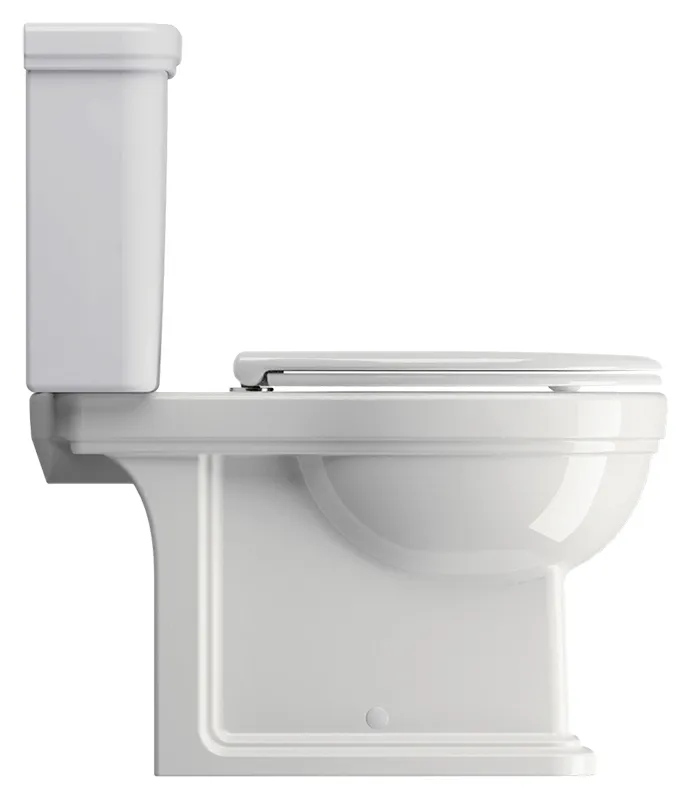 Дизайн унитаза выполнен в ретро стиле, что позволит ему гармонично вписаться в интерьер с элементами старины. Монтаж осуществляется на пол, что обеспечивает устойчивость и надежность конструкции.