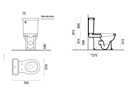 Длина унитаза составляет 70.5 см, ширина - 37 см, высота - 81.5 см. Он выполнен в классическом белом цвете, который подойдет под любой интерьер. Вес изделия составляет 24.8 кг.