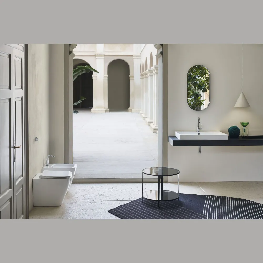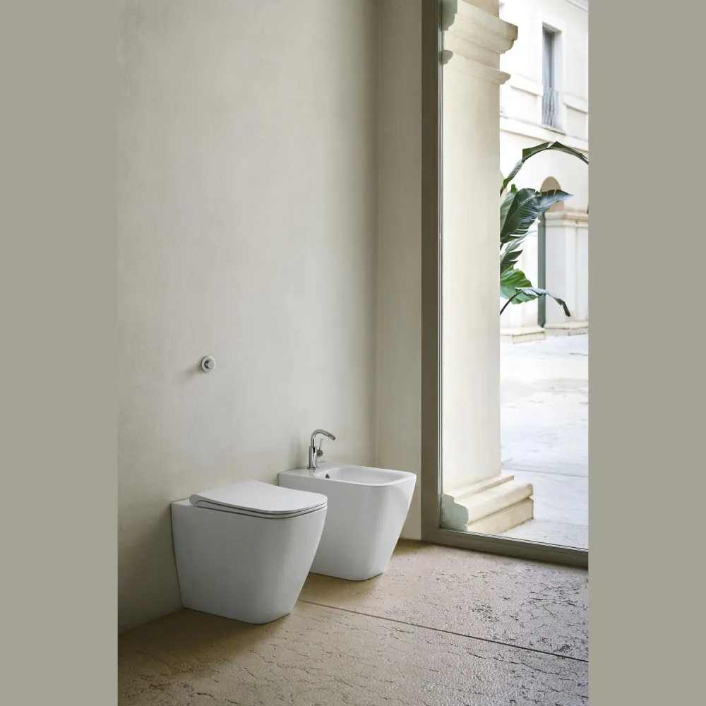 Приставной унитаз GSI Nubes 961011 со сливом в стену (P) трансформируемым в пол (S) через отводящую трубу,безободковый, Размер - 52х35х42 см. Цвет - белый. Система Swirlflush - безободковая инновационная система смыва, бесшумная.