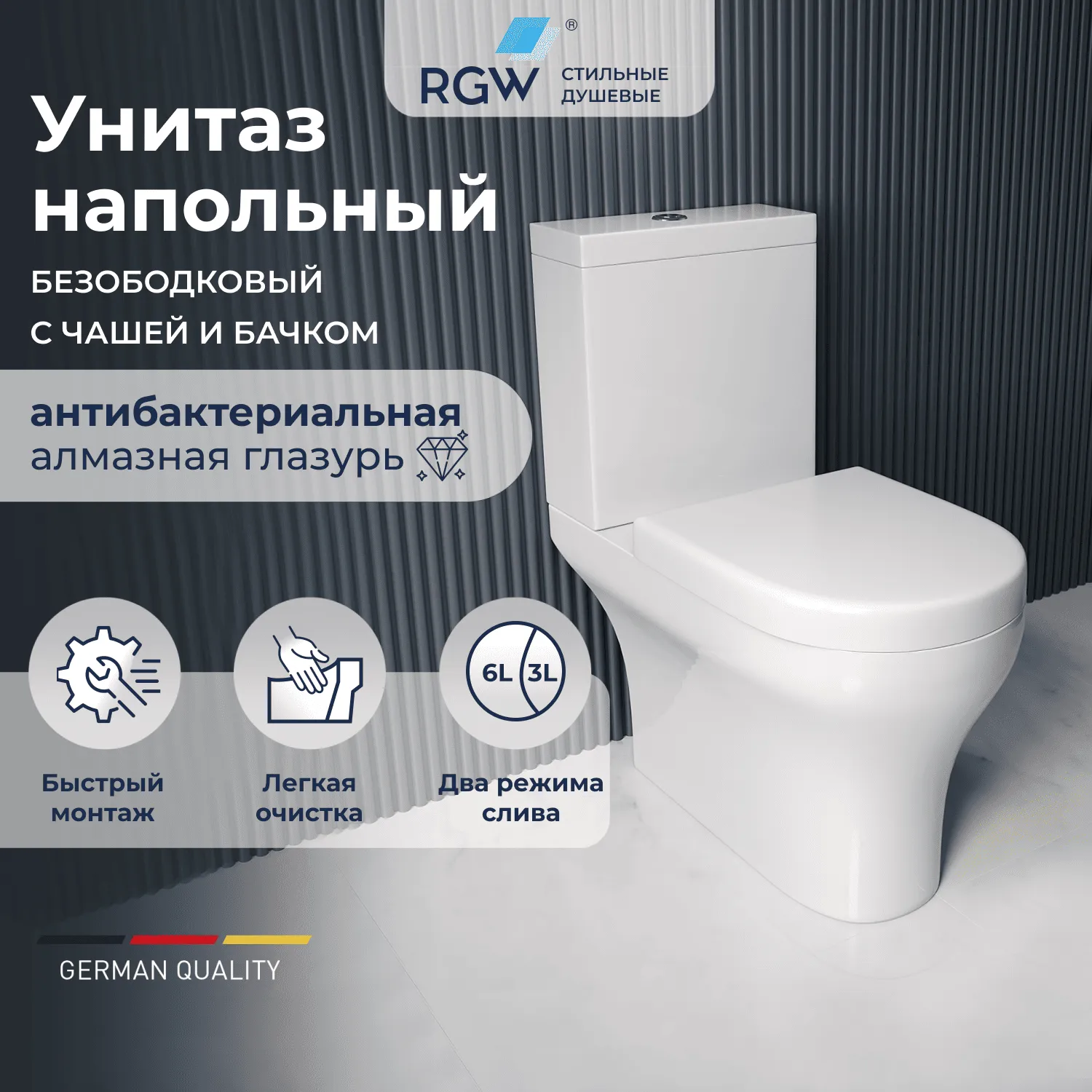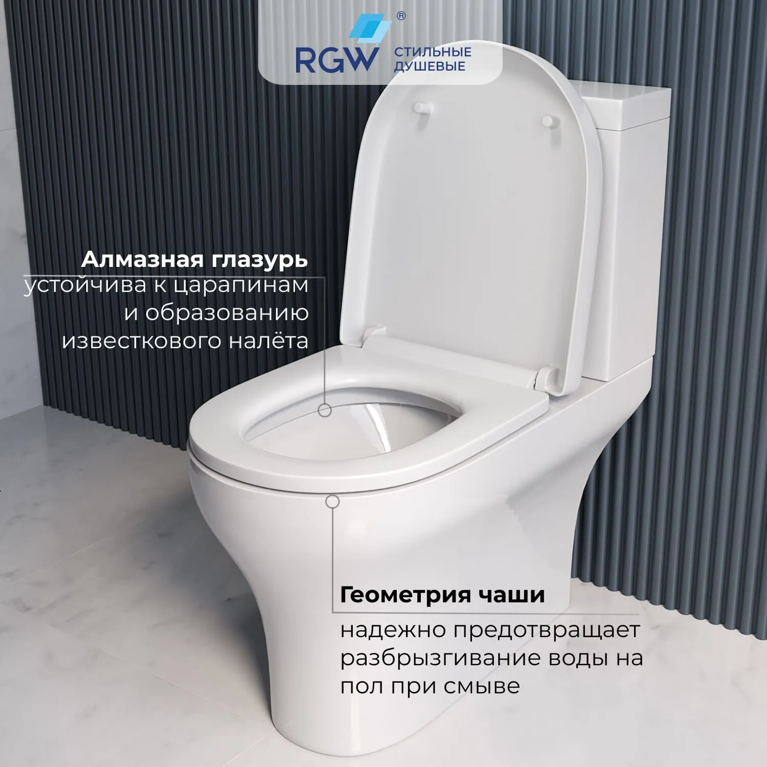 Корпус унитаза обработан алмазной глазурью - инновационная антибактериальная эмаль наносится непосредственно на керамику во время обжига. Такая технология обеспечивает долговечный блеск, приятную на ощупь поверхность, высокую защиту от царапин, истирания и воздействия внешних факторов. Идеально гладкая поверхность позволяет исключить образование известкового налёта и загрязнений, а также обеспечивает длительную и абсолютную защиту от микробов и бактерий. Исключительная простота очистки также позволяет снизить расход воды.
